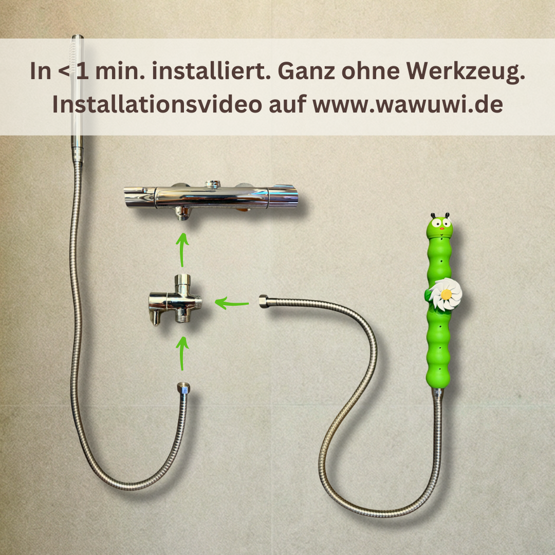 Sie ermöglicht den gleichzeitigen Anschluss von Willi und deiner bestehenden Duschbrause. Das Set enthält Duschschlauch und Umschaltventil – einfach montiert, sofort einsatzbereit. Mit dem Umschaltventil kannst du bequem zwischen deiner Duschbrause und Willi wechseln oder beide gleichzeitig verwenden.